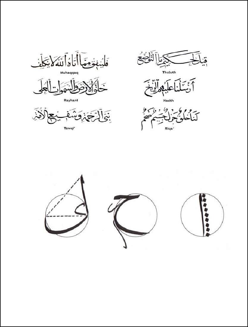 Основой для определения пропорций является алиф, высота которого в различных стилях варьируется и задает максимальный размер для всех остальных букв — они на могут быть больше алифа. Алиф выступает инструментом контроля — он определяет диаметр окружности, в которую различным образом вписываются все остальные буквы.