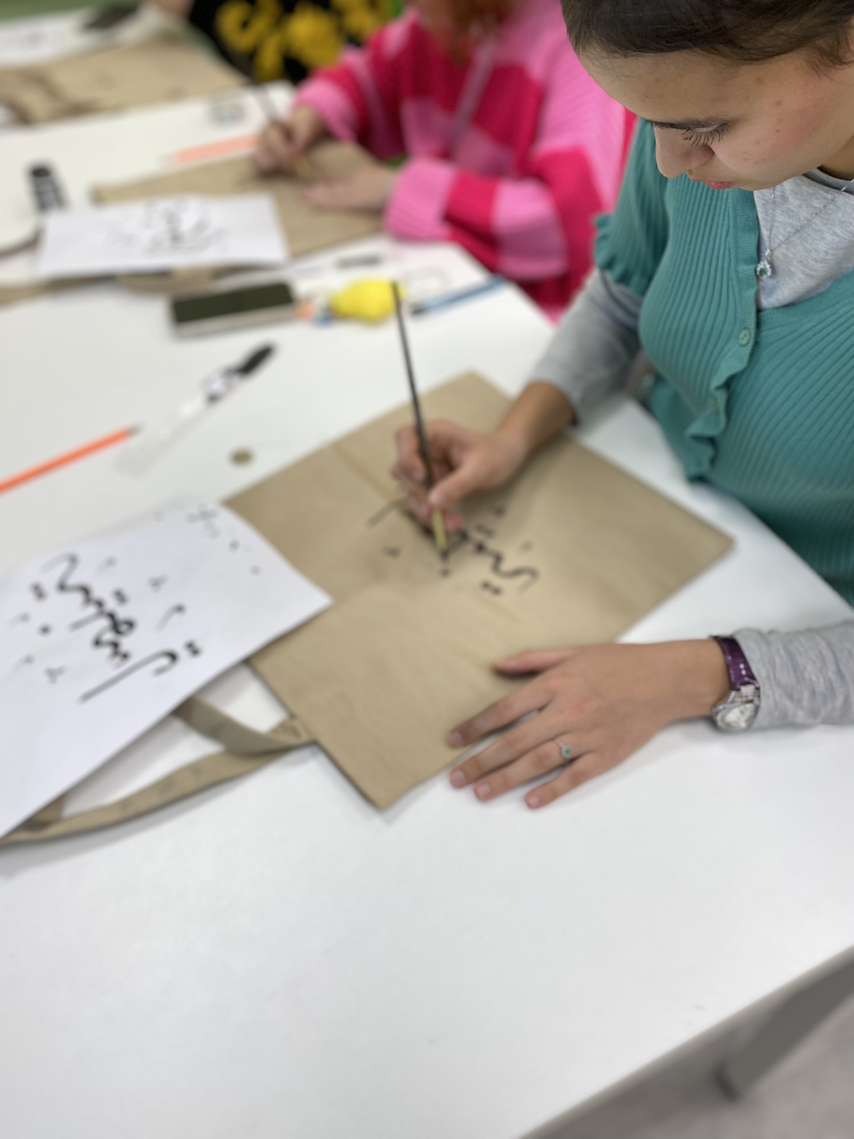 — Мастер-классы по росписи шоперов, футболок и других текстильных изделий, которые остаются в подарок для участников. Подходят для учебных и корпоративных мероприятий с известным количеством людей, возможно создание индивидуальных надписей для каждого участника.