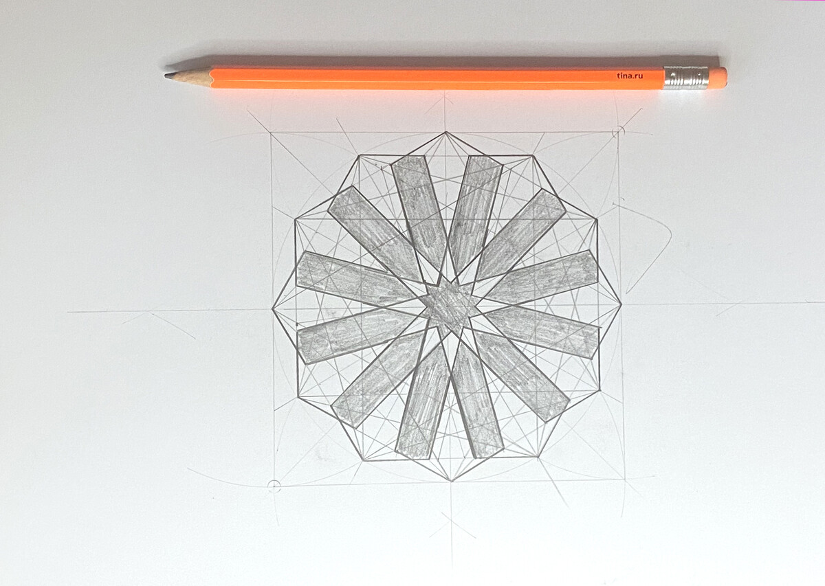 Наша первая фигура будет не очень сложной и большой, но постепенно мы научимся строить многогранные и крупные орнаменты. Возможно, первая работа не получится настолько идеальной, чтобы украсить ей интерьер, но уже второй орнамент можно сделать аккуратно и вставить в рамку.